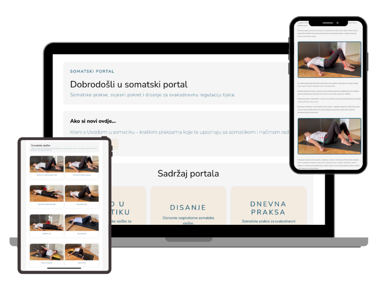 Ako želiš nastaviti s praksom i između susreta, portal je mjesto gdje imaš sve na jednom mjestu. Snimke, vježbe i programi koje možeš koristiti kada ti odgovara.